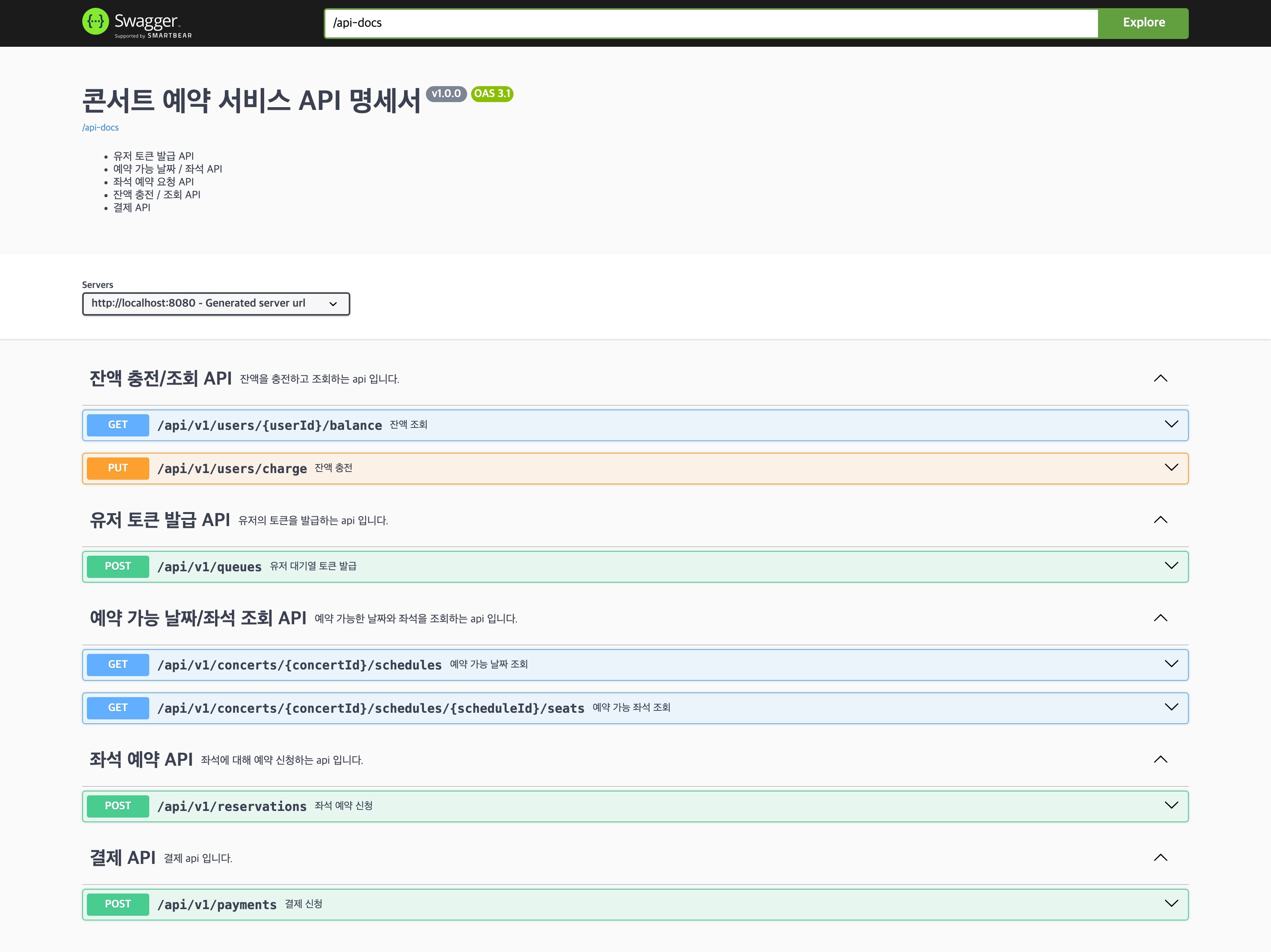 설계에서 정의했던 내용을 바탕으로 요구사항에 충족하도록 API를 개발하는데 집중했다. 단순히 기본 기능만 구현한게 아니라 대기열 토큰 검증이나 스케줄러를 사용하여 토큰을 관리해주었다.