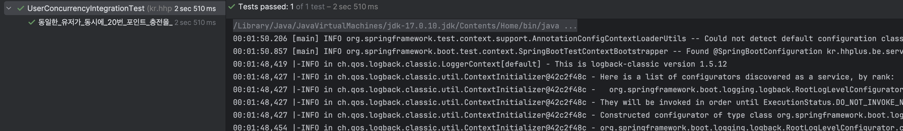 - 분산락 - 높은 동시성을 제공하며 충돌 발생 시 빠르게 재시도가 가능하다는 이점이 있으나, 포인트 충전 시엔 충돌이 적기 때문에 DB 락으로 충분히 제어 가능함
