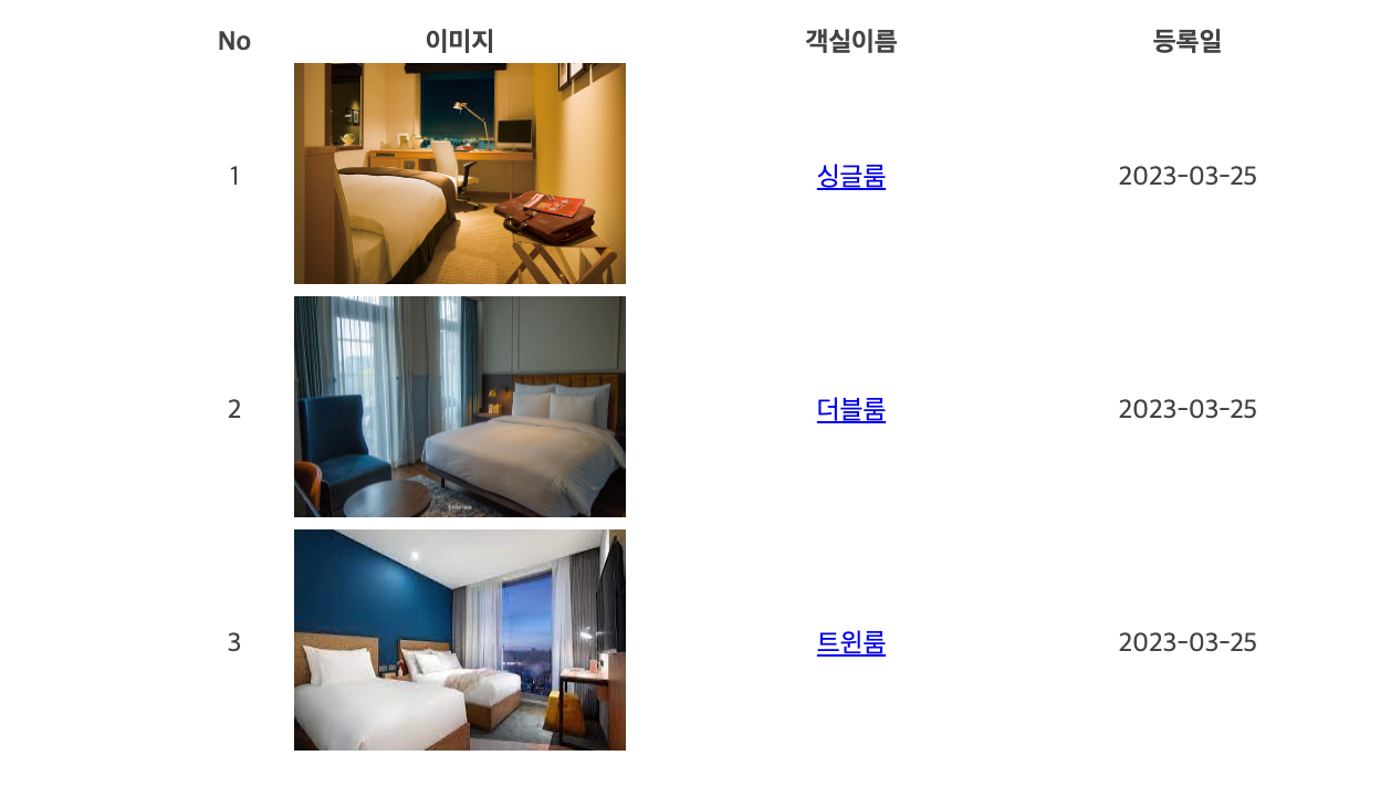 객실테이블과 객실 이미지 테이블을 조인 시켜줘야 합니다.