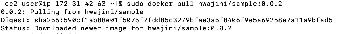 ssh창에서 해당 명령으로 Docker 허브에 올라가있는 이미지를 다운로드 합니다.